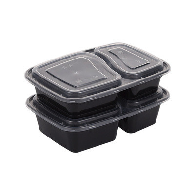 Meal Prep food Packaging 2 compartment Microwavable plastic food container with Lid take out Disposable Lunch bento Box